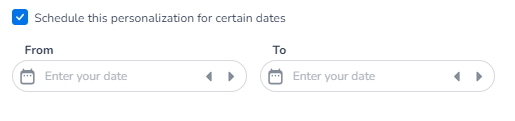 By leaving this box unchecked, the personalization will be displayed continuously. However, if your personalization is tied to specific occasions, like a Christmas promotion, you can opt to set a start and end date for showcasing it. This ensures that the personalization is visible only within the designated timeframe, aligning seamlessly with your promotional strategies.