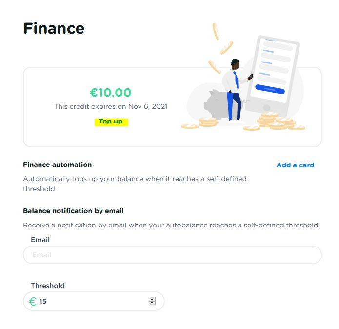 Top up your account (minimum of 15 euros)