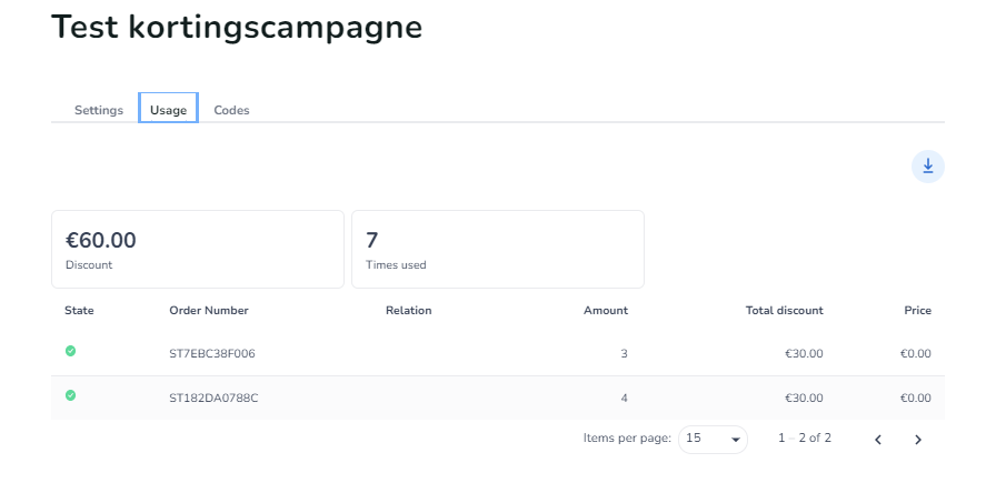 Under the 'Usage' tab you can find back who has already used the code and the total discount spent in relation to the number of tickets.