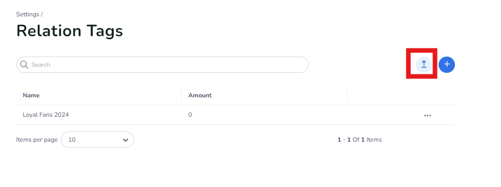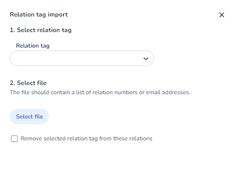 when you know you have a group of relations, that are already in Seated Ticketing, we can also manage relation tags via an excel import. You need an excel file of these relations (email or relation number) and then you go back to the setting where you added the relation tag. next to the '+' icon you find a button to import relations. Once you press that button you can select wich relation tag needs to be added/removed and you can import your file.