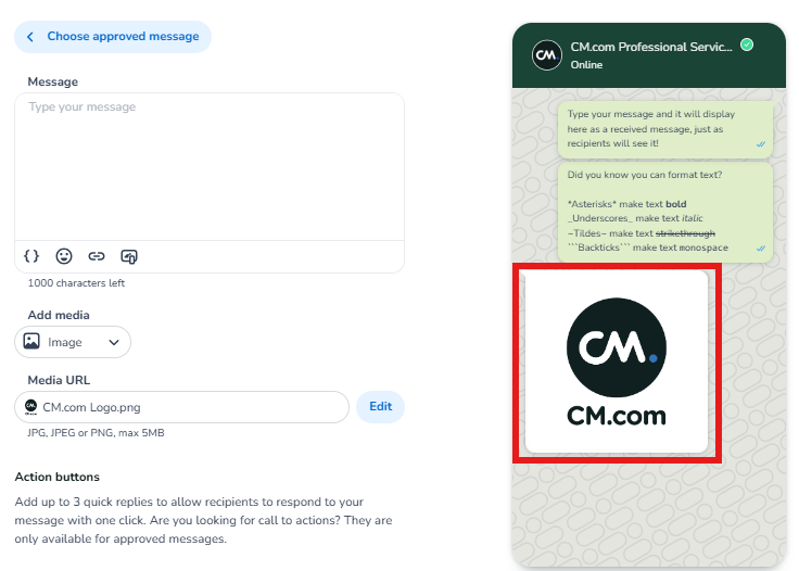 Fourth and finally, you can review the added media in the preview section on the right side of your screen. This preview provides a visual representation of how the message will appear to the recipient. If you wish to change the media, simply click "Edit" next to the media bar to make your adjustments.