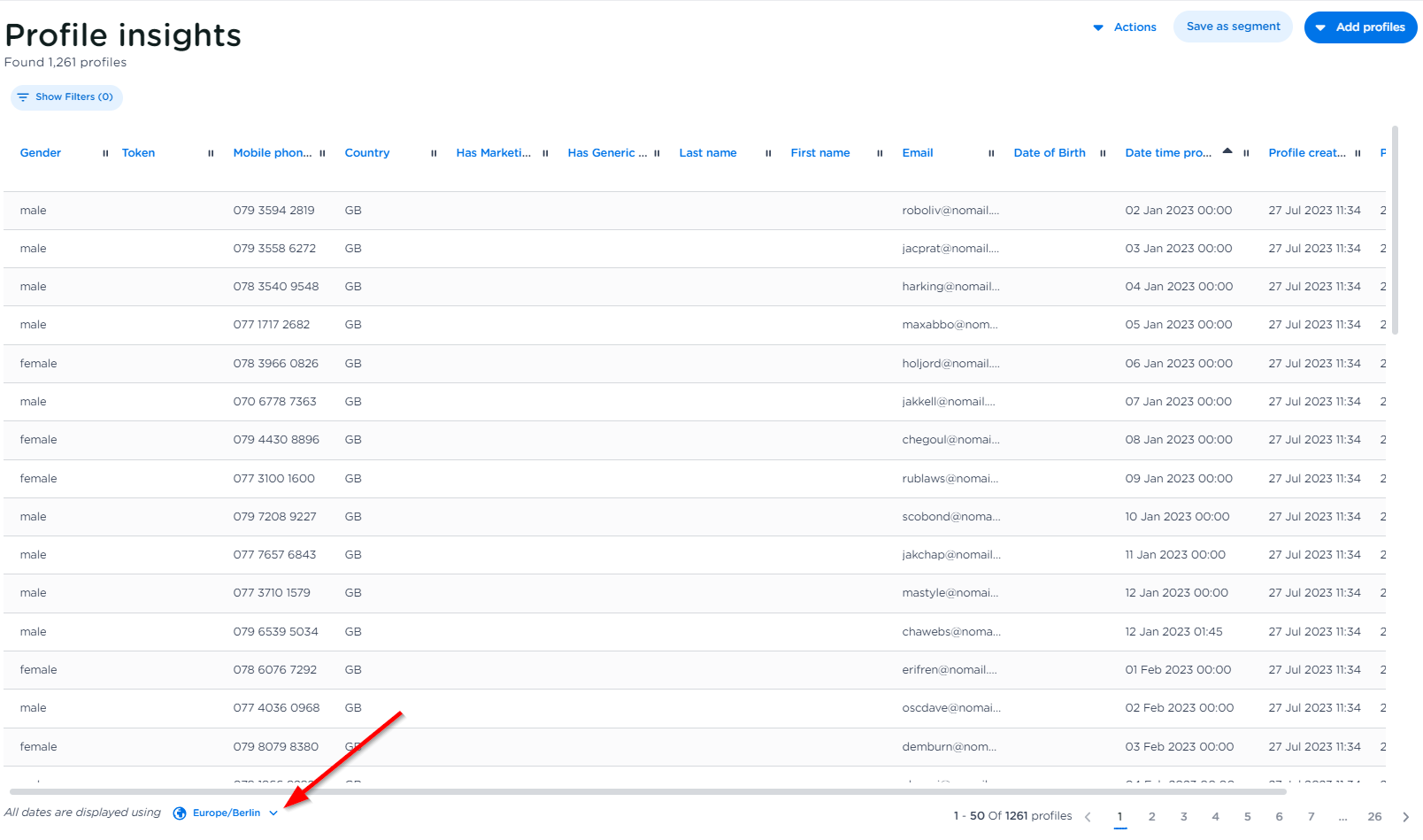 On the frontend, we display dates in the local timezone and/or according to your selection on the profile insights page. This ensures that all date properties are presented in the chosen timezone, including the profile details page. Additionally, we have implemented a hover feature that normalizes the dates into a more user-friendly and easily readable format. This is a default format and cannot be adjusted.
