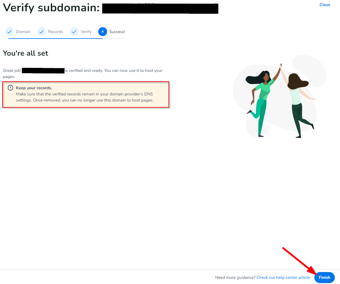 Keep your records! The verified records must remain in your domain provider’s DNS settings. Removing them will disable the use of this domain.