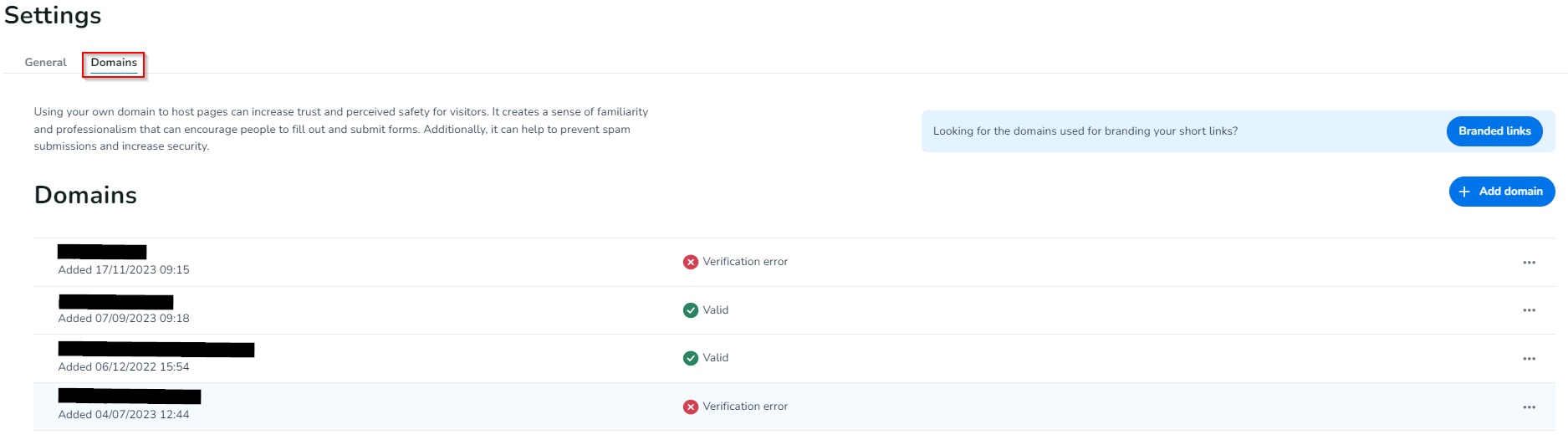 In the domains overview, you can view all your valid and invalid subdomains. From here, you can retry a failed one or add new ones.