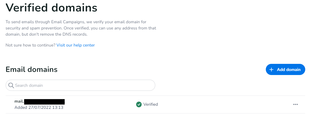 In this section, you can view your already verified domains and add new ones seamlessly.