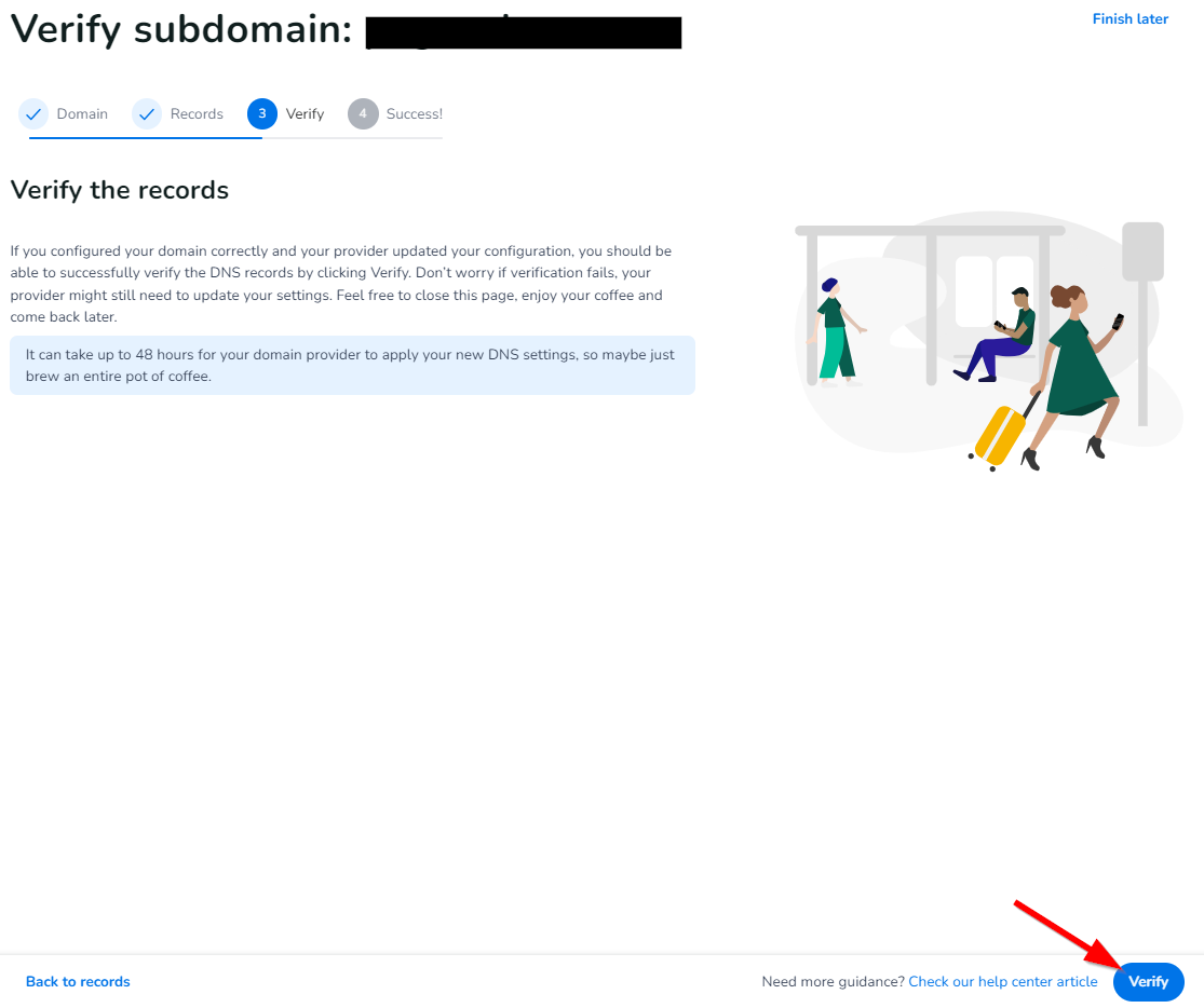 This step may take up to 48 hours, depending on your domain provider. Click 'Verify'.