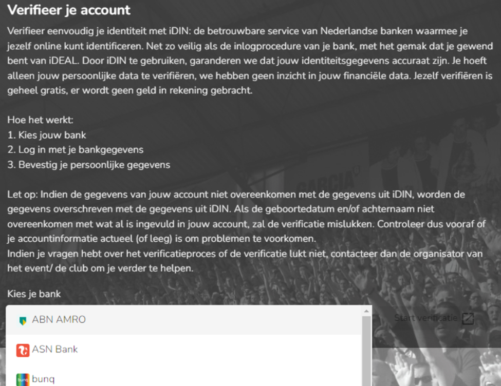 In the next screen, some more information is shown and you can make the choice of bank. This text is not customisable and is displayed in each organisation. After selecting the bank, confirmation of your identification starts.