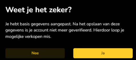 If you want to make changes again, you will first receive the message below and then restart the process. Please note: even when making a change in the backend, the person in the online shop will have to restart his verification.