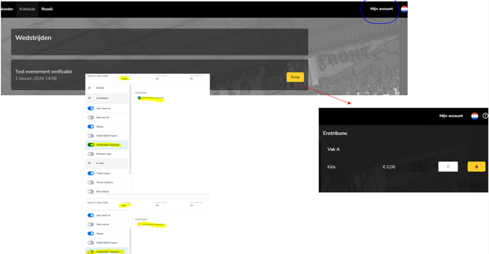 In case verification is activated in the sales plan and you log into the shop you will immediately see that ‘tickets are not available’. You can consider to add this as additional text on the top in the shop. Unless certain ticket types do not require verification, in which case only these tickets are immediately visible and available. In any case, it is important to set ‘before entering the shop’ as a login policy.