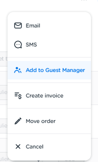 You can also choose to send an existing order to the Guest Manager afterwards. When the relations of the order is activated for the Guest Manager, you can go to the order, click on the three dots in the upper right corner, and click on 'Add to Guest Manager'.