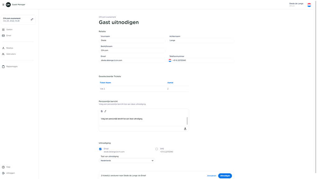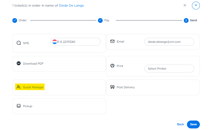It's also good to know that you can always log in to someone else's Guest Manager from the back office. This way, you can always keep an eye on whether the customer is already in the process of sending out tickets.