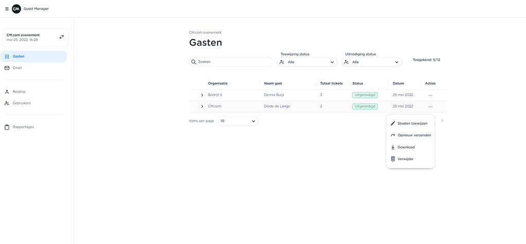 After the invitation has been sent, you can return to 'Guests'. By clicking on the three dots on the right next to the recently sent invitation, you will now see the following options: