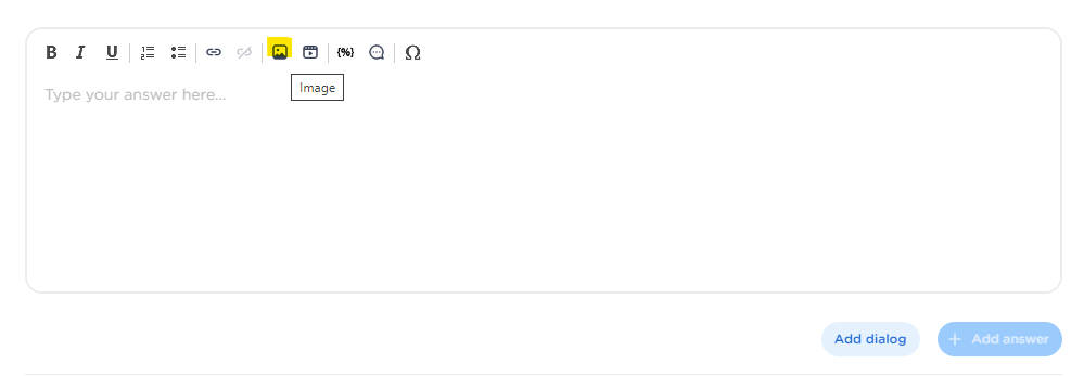 Open the article, dialog or event answer that you want to add an image to