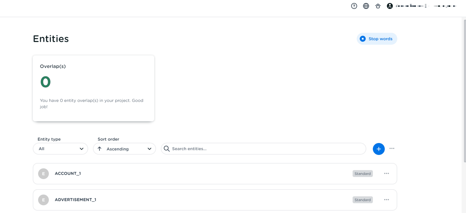 For the purpose of this how-to guide, we'll provide you with a template containing dummy content to help you visualize how the different settings will look. If your project already contains entities, you can export them and use the same file to import new entities or add additional words to existing entities.