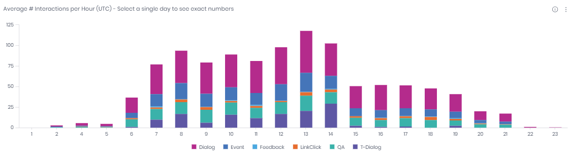 Please note: This shows the number of interactions per hour, averaged over the days in your selection. If you want the exact number of interactions on a given hour for a given day, select that day from the time period filter.