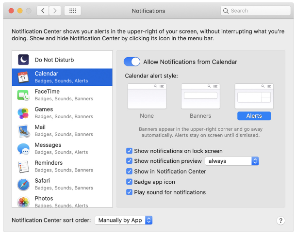 Choose the Apple menu icon and navigate to System Preferences, then click on Notifications. Select your browser in the left column.