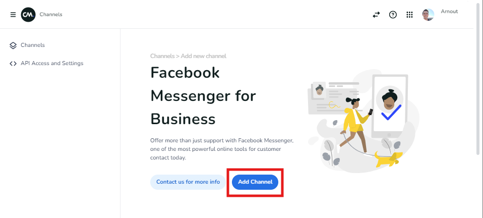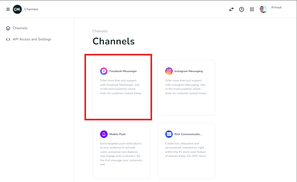 Select the channel to add (Facebook Messaging)