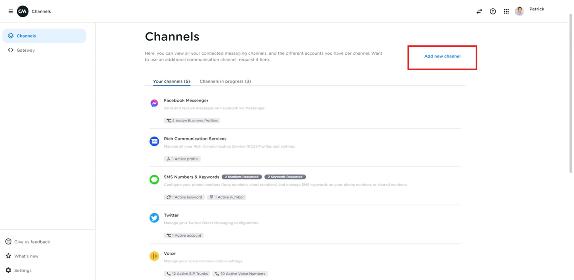Navigate to 'Channels' and click on 'add new channel'