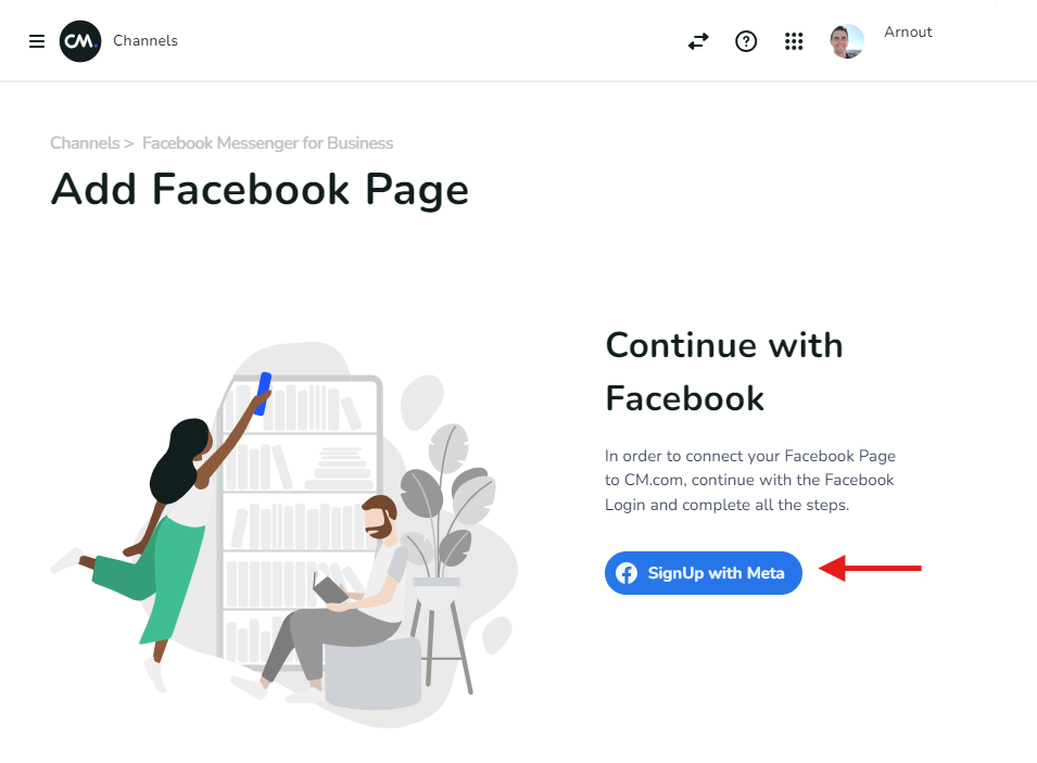 Click the 'SignUp with Meta' button, and follow the steps to assign the right Facebook page