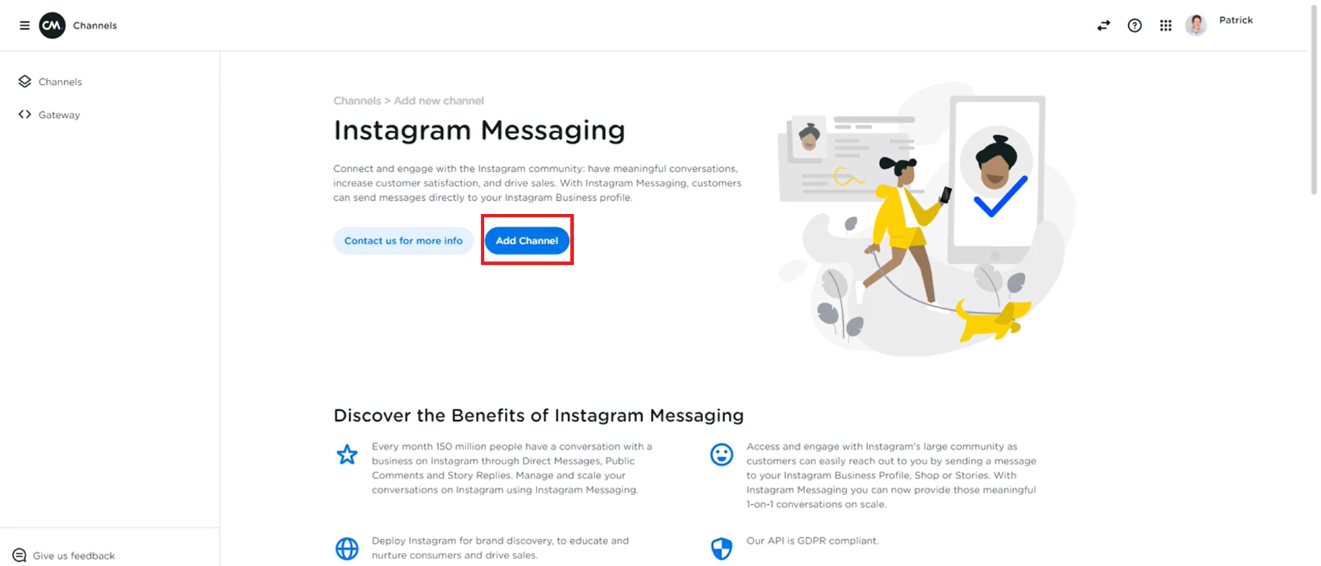 In order to receive and send messages from and to Instagram, it needs to be connected to the Business Messaging app.