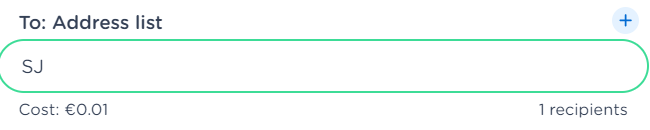 3. select the preferred address list. The amount of receivers and corresponding costs will now appear underneath the address list