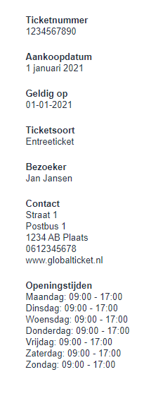 De informatie aan de rechterkant, de sidebar op het ticket, is een placeholder aangezien dit per ticket dynamisch aangepast wordt:
