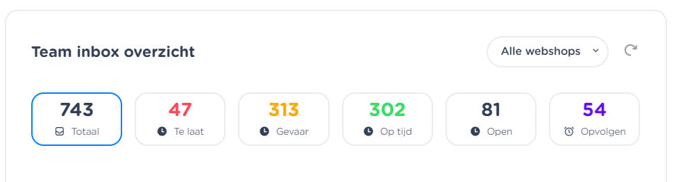 Note that the wallboard only shows queued workload. This means that only email and contact form will be shown. In the inbox overview all conversations will be shown.