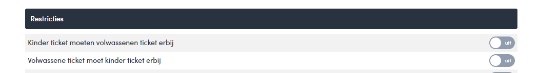 - Dat er bij een kinder ticket minimaal een volwassen ticket erbij moet