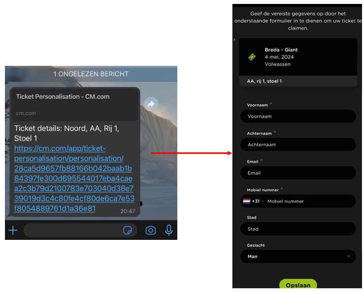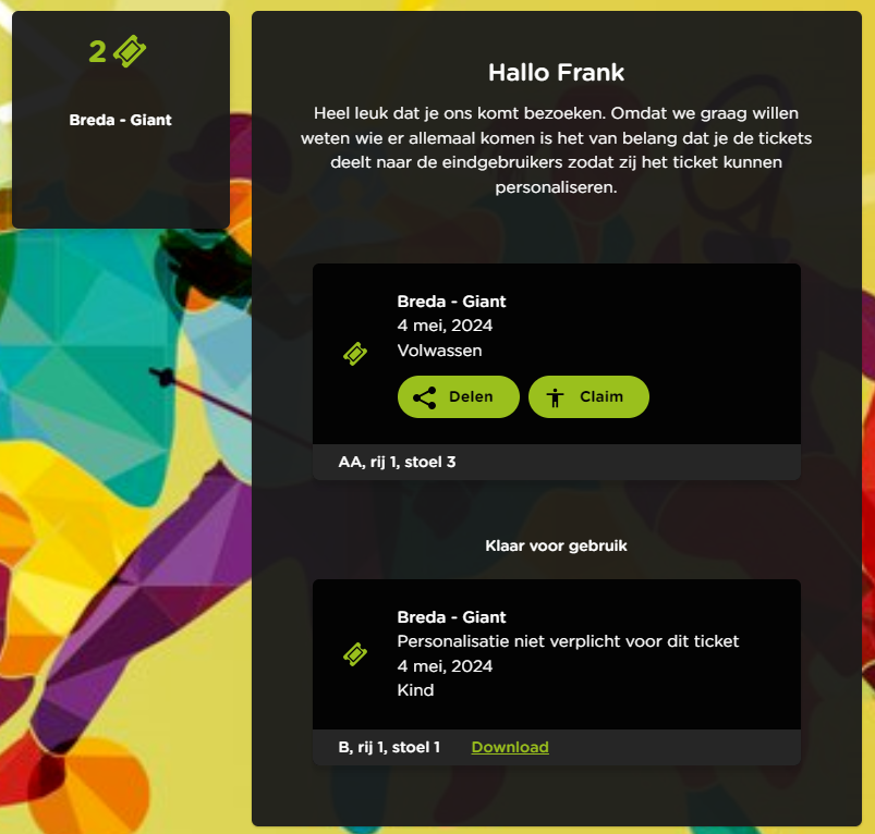 On this page, it is possible to claim a ticket and/or share it for someone else to personalize.