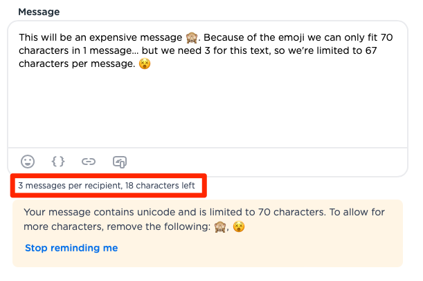 The Campaigns editor will indicate the amount of messages a certain text will consume while composing.