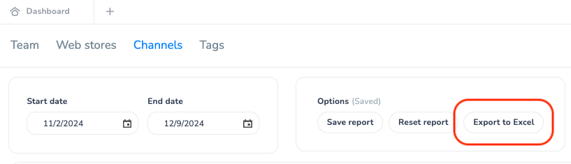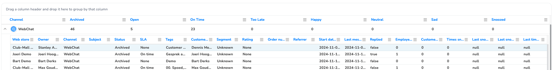 Within the reporting it is possible to create an export of the report you are looking at at that time. This export will provide an overview of the raw numbers of conversations and characteristics.