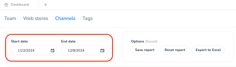 The period selector can be used to define the period of interest. The period provides the score for conversation displayed within the overview and deep dive views.