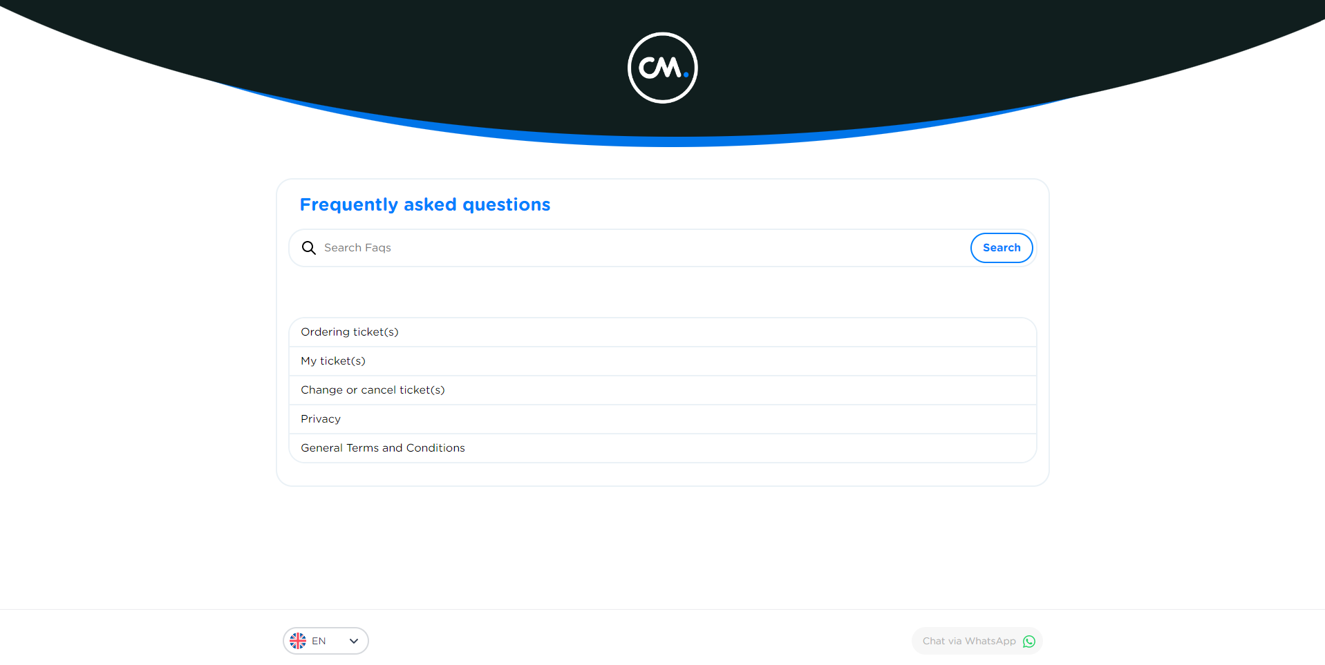 Do you have any questions about ordering, paying or personalizing tickets? Go to https://support.cmtickets.com/en.