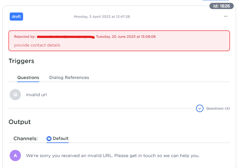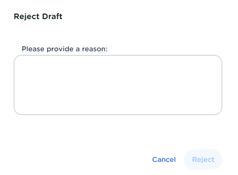 When reviewing the current draft, if you decide there need to be some adjustments made to the content, you can select the “Reject” button and provide a reason as to why the content wasn’t approved: