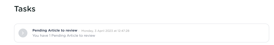 The pending draft will appear in the “Pending Article to review” task list to another team member: